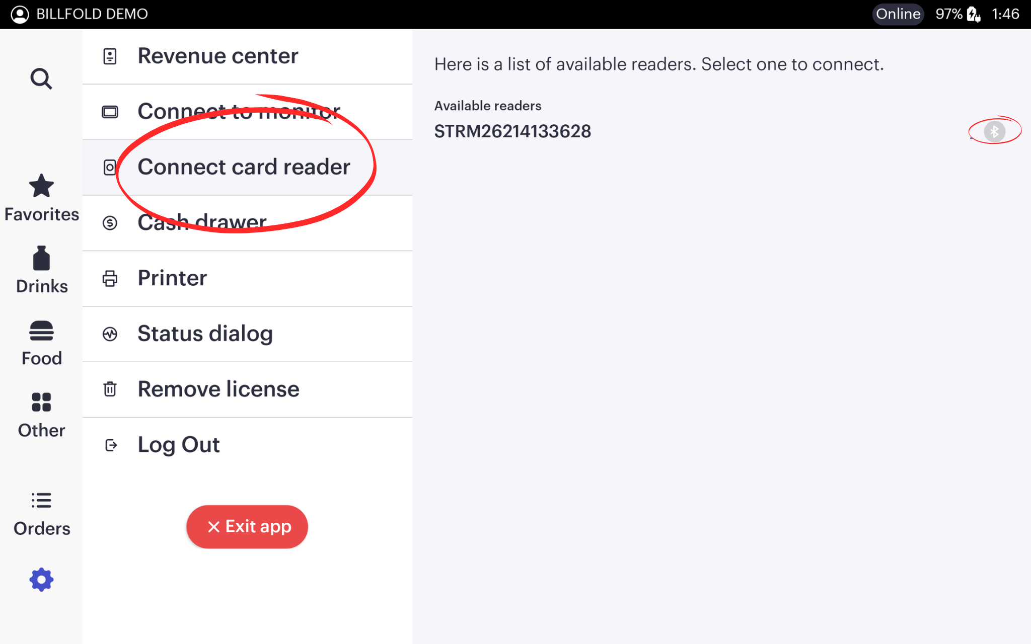 Then tap the Bluetooth icon to the right of the desired reader from the list of available devices