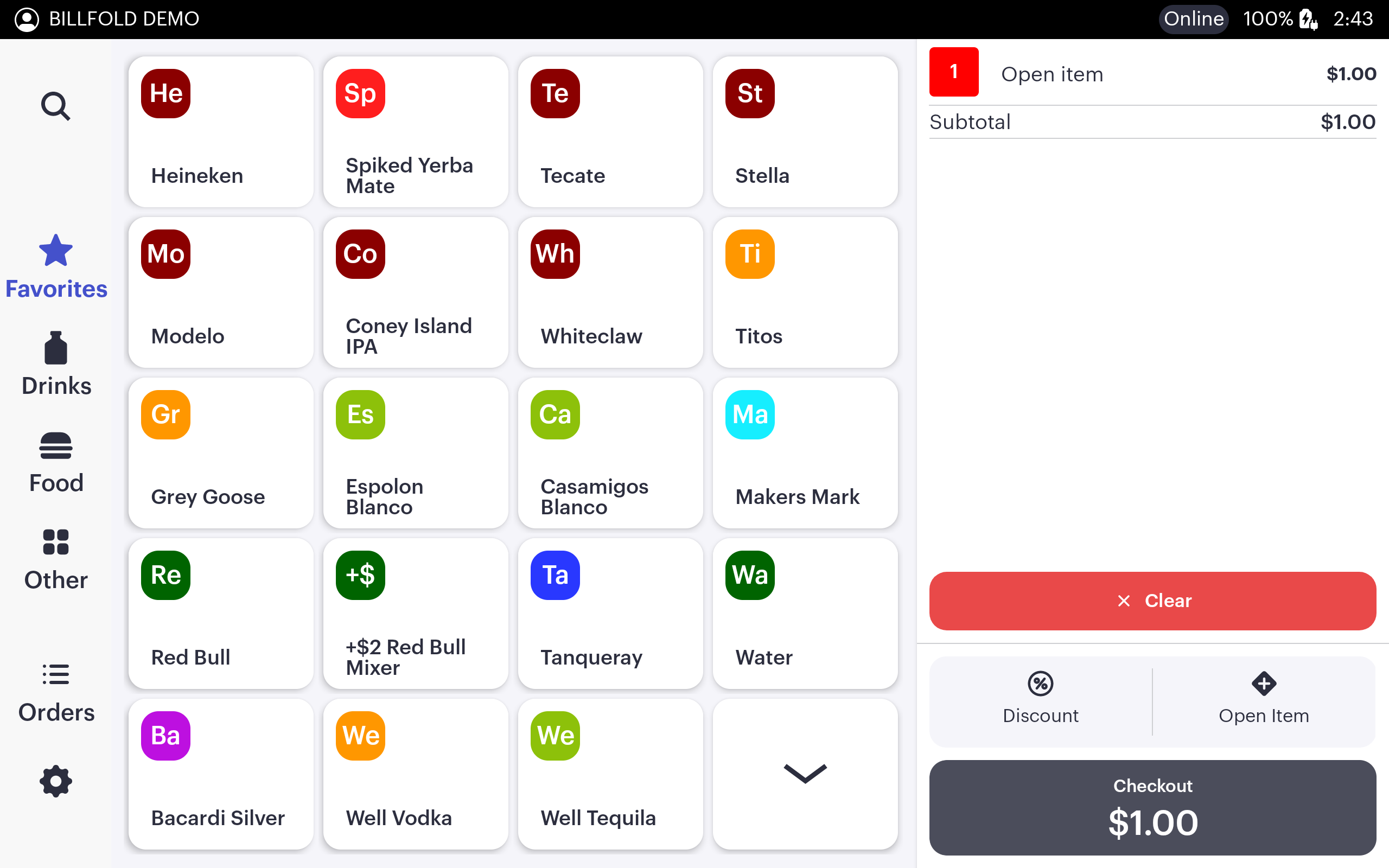 Toggle “Open Item” on within the Revenue Center settings on the dashboard. If no Revenue Centers have been created, it is best to do this at the Event settings level if you plan to use the feature across your event.